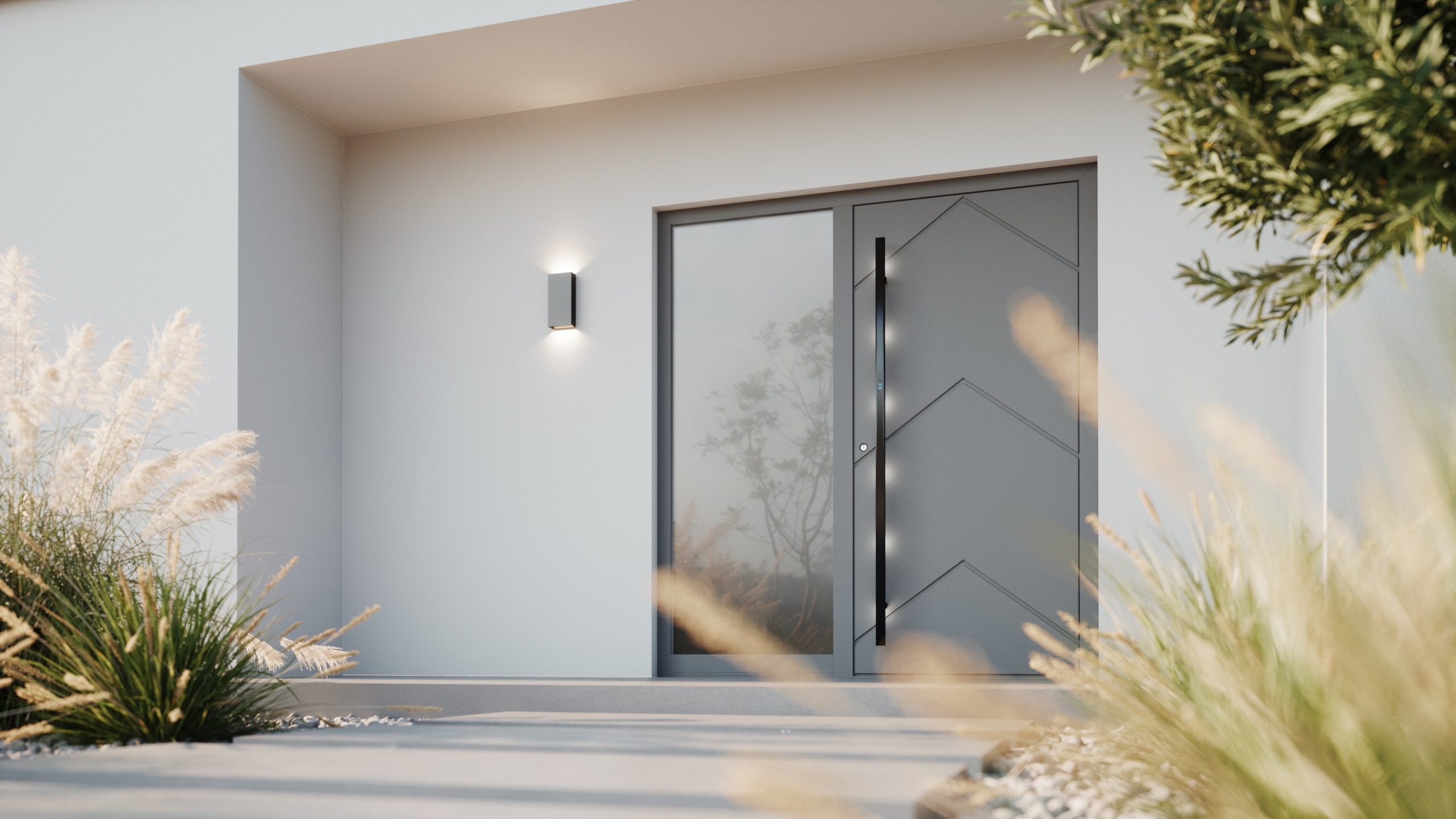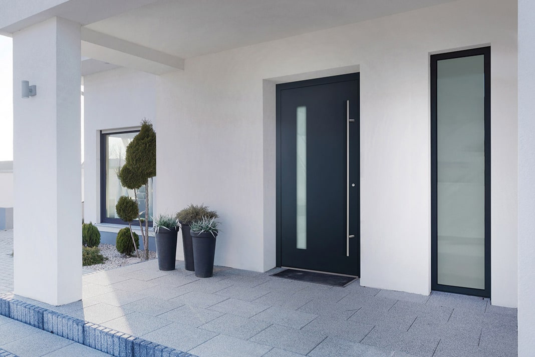 Combining aluminium strength with elegant glazing elements, the Alu XGlass collection allows natural light to enhance your entrance while maintaining privacy and security.
